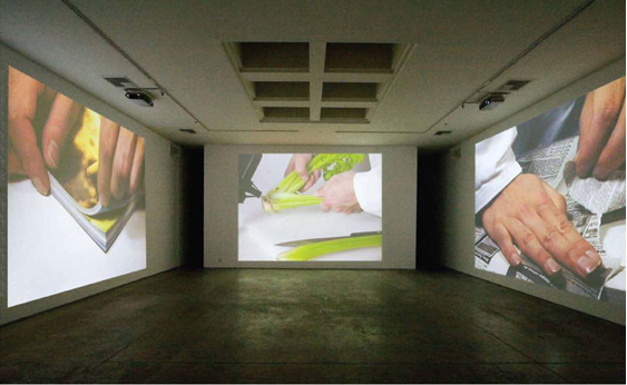 Takehito Koganezawa is a Tokyo-born, Berlin-based artist. He is a video-based artist who takes different approaches to how he uses the medium. I am, however, only going to focus on one approach he takes to creating his artwork. Over the years, (since 2005) Koganezawa has been going back to a particular project where he is projecting different clips next to one another, and playing them at the same time. Each clip compliments the ones next to it in order to create a singular artwork.