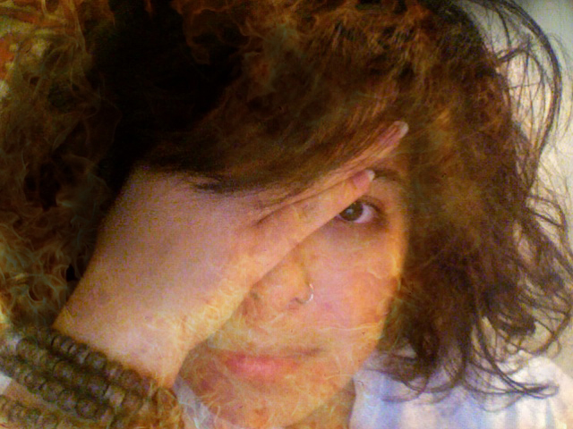 I then decided to change up my idea a little bit and wanted text to appear over the footage of two images of myself, facing myself. The text was supposed to appear as the flames went up and down, and eventually disappeared. I went ahead and took video footage of myself from the viewpoint of a profile shot. This time, I did not say anything, but instead took various shots of myself looking straight ahead. Eventually, the footage would be edited in a way that two images would face each other and interact with how I saw myself.