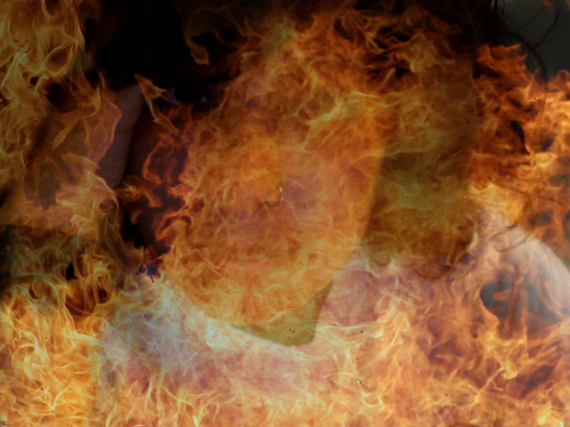 Taking a step back and looking at the artwork as if I did not make it, I can see that the image is some kind of reflective self-portrait. Seeing as how the two images are looking at each other, I can say that they perceive each other in an almost mirror like way. I can tell that they are the same person because of the basic contour outline and because of the movements they making. They are not the same exact movements, so you know that it is not a mirror effect. I believe that the artist perceives herself as different, but still the same. The flames add an interesting effect because the two images of the artist are not responding to the flames, and therefore provide a serine effect. The audio, I assume, is the voice of artist. Her monologue sounds like she read from a scripture of some kind. It gives a philosophical vibe that is a little difficult to comprehend unless you listen to it carefully. Also, the audio playing while the flames are visible makes me think that the audio is imperative to the flames.